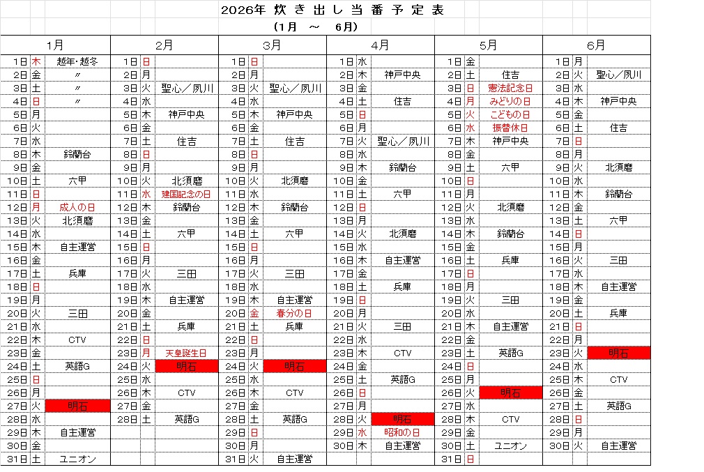 社会活動委員会(炊き出しグループ)からのお知らせ